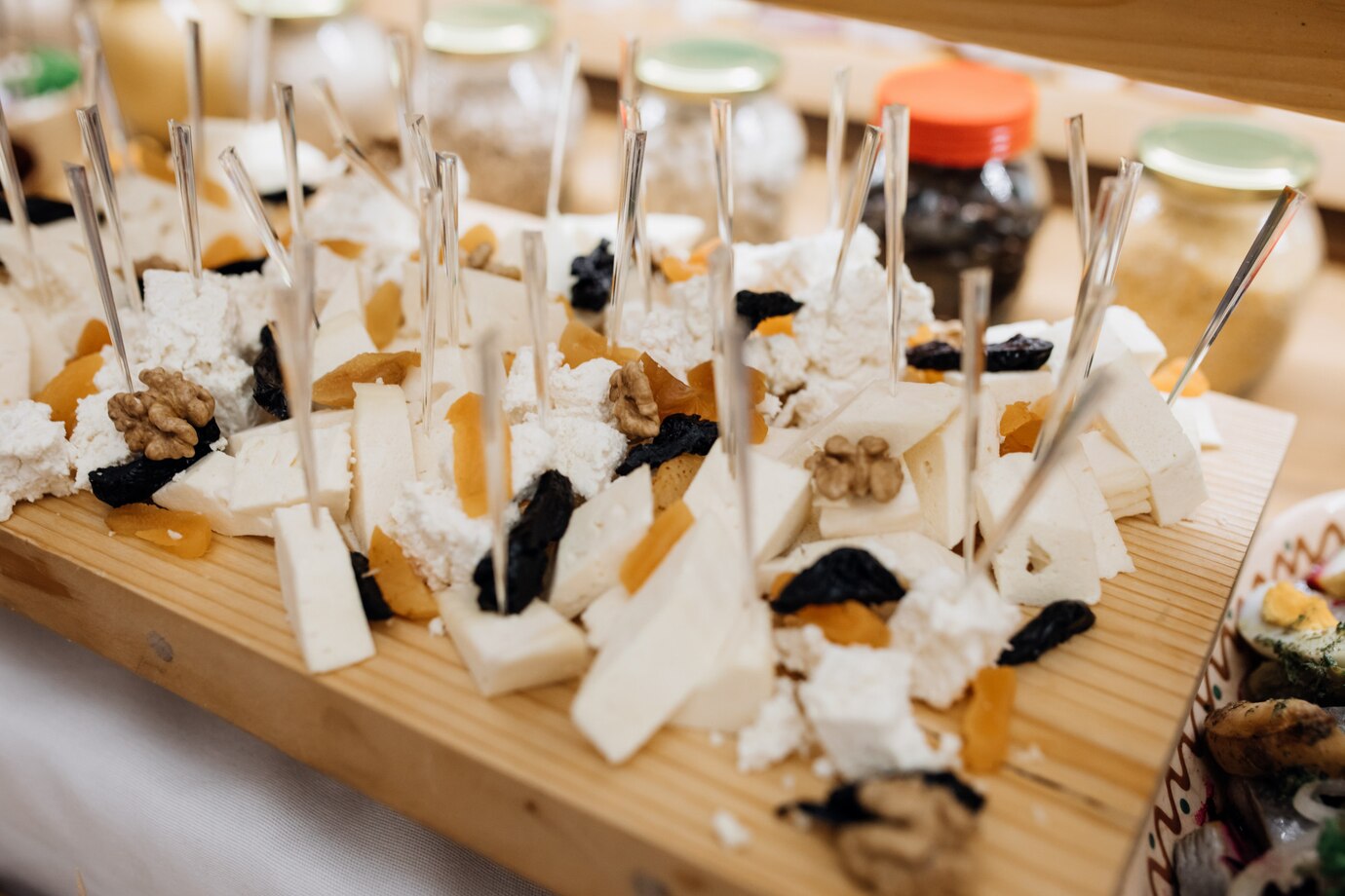 Combinamos quesos artesanos con dulces hechos para compartir. Lo decoramos según el estilo del evento. Es perfecto para la mesa final o como picoteo durante el día.